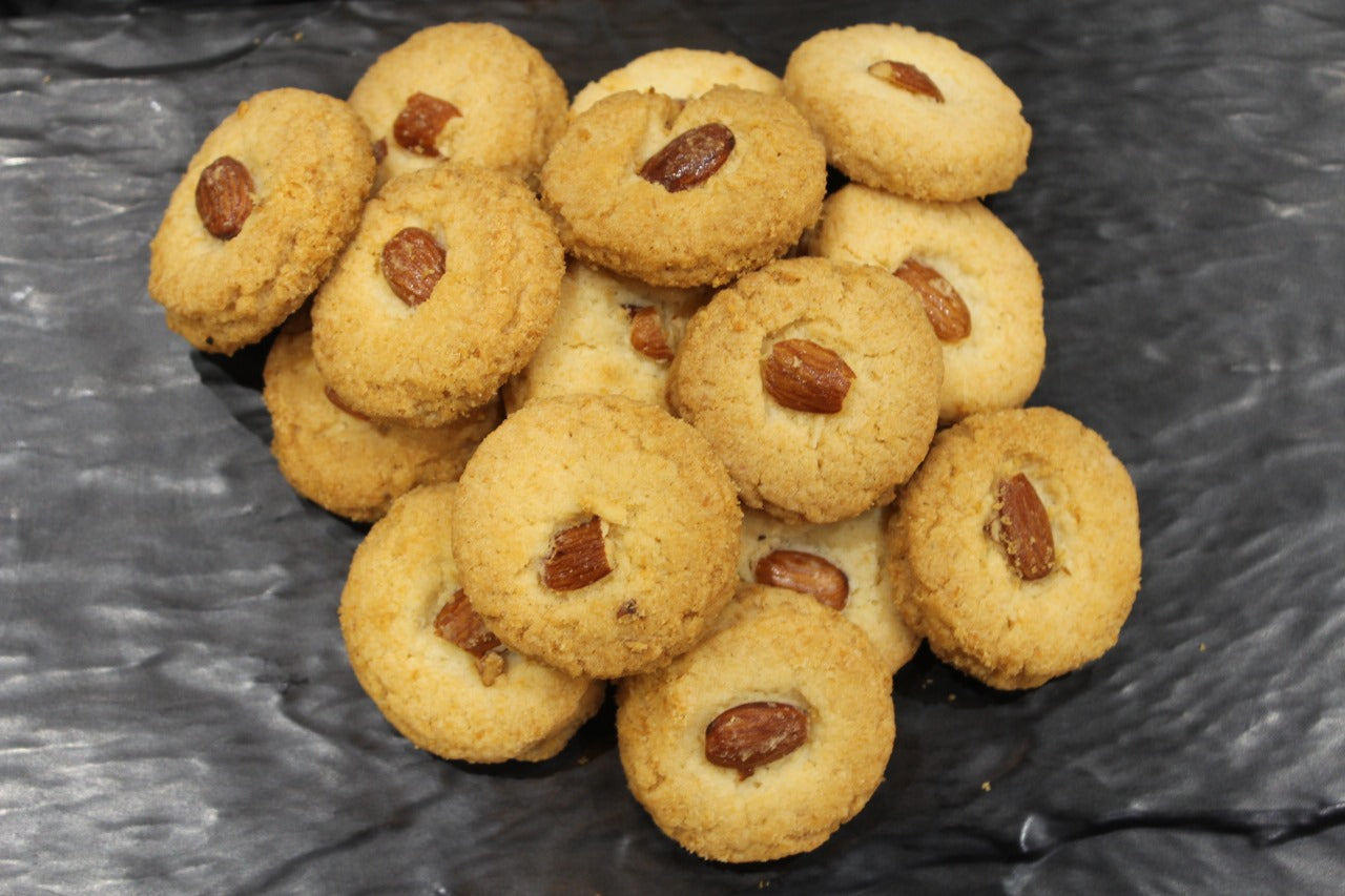 Our almond cookies are a delicate delight, featuring a rich, buttery texture with a generous scattering of toasted almond slivers. They're perfectly sweet, offering a delightful contrast of softness and crunch, making them an irresistible treat that's simply impossible to stop at just one.