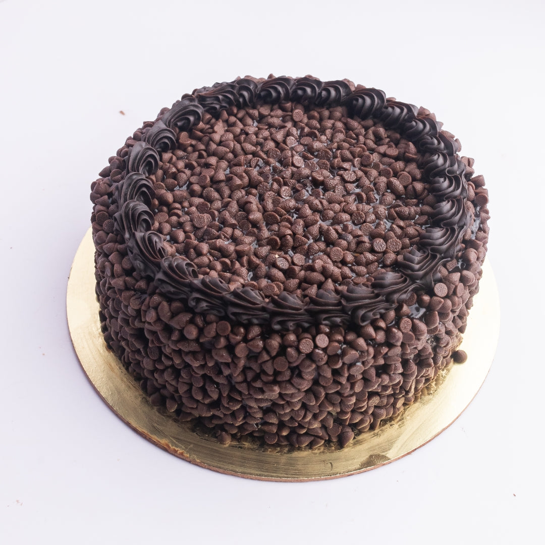 Decadent chocolate cake draped lusciously with dark chocolate mousse. Covered in choco chips this cake is a crunchy cream delight that will surely pamper your taste buds!