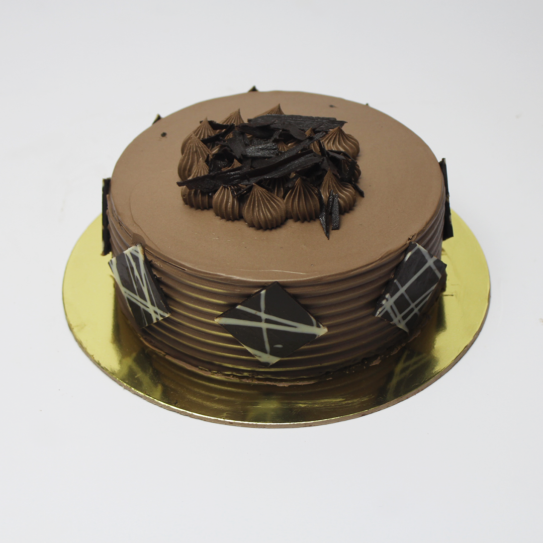 Dense and fudgy chocolate cake layered with a scrumptious chocolate cream frosting. Garnished with fondant chocolate flakes this ultimate chocolate combo is indulgent and quiet simply stunning!