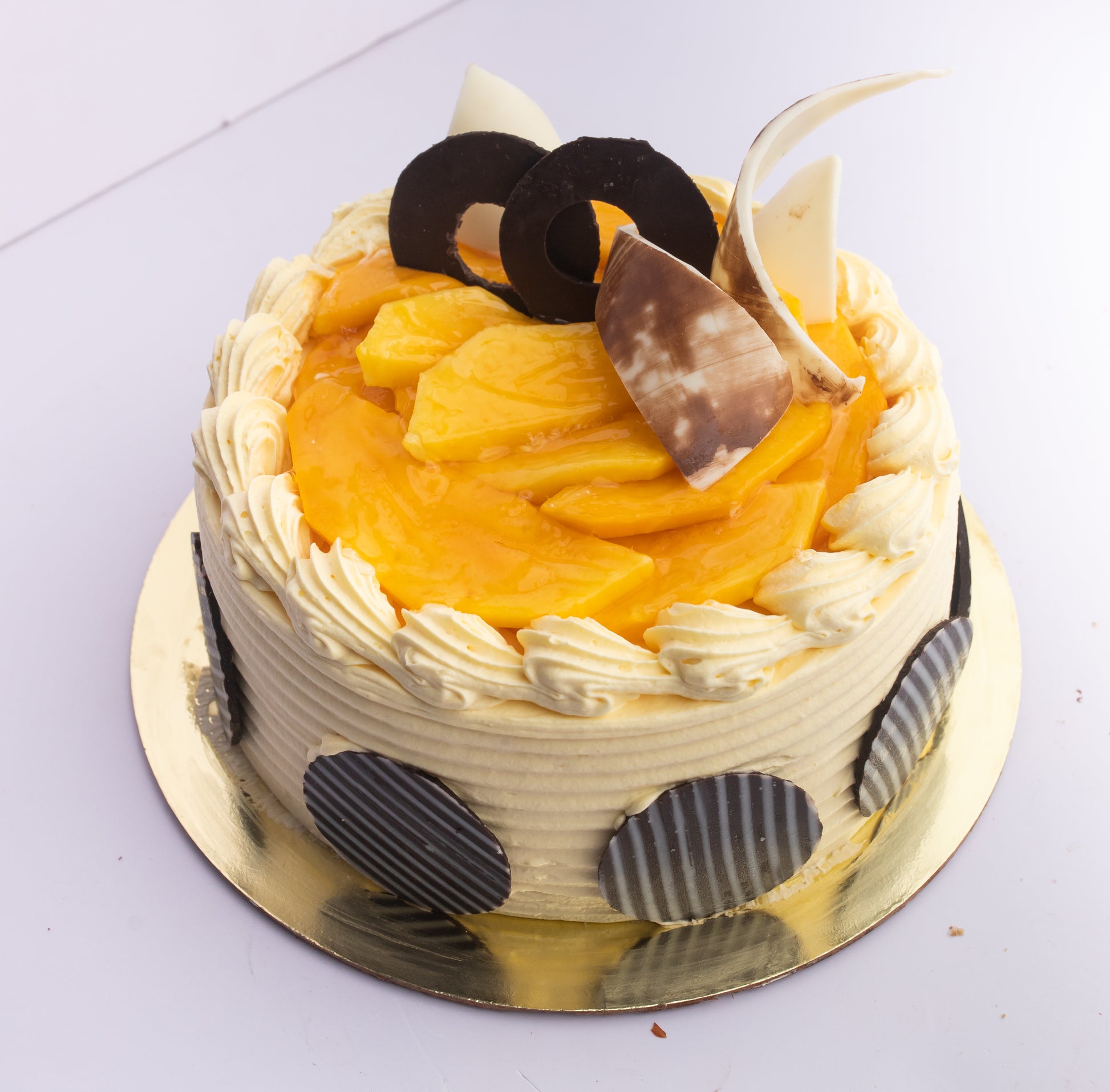 Layers of soft and tender vanilla cake sandwiched with a zesty mixture of mango pulp and fresh cream frosting. Topped with whipped cream and fresh mangoes, our classic mango cake is a juicy indulgence like no other!