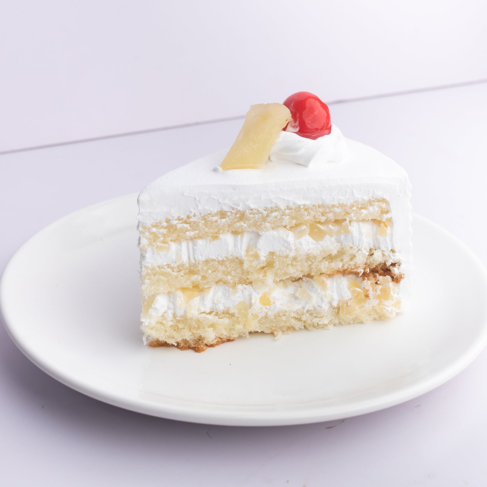 Layers of soft and tender vanilla cake soaked in fresh pineapple syrup and then sandwiched with a fluffy fresh cream frosting. Topped with fresh cream and pineapple slices, our classic pineapple cake is a juicy indulgence like no other!
