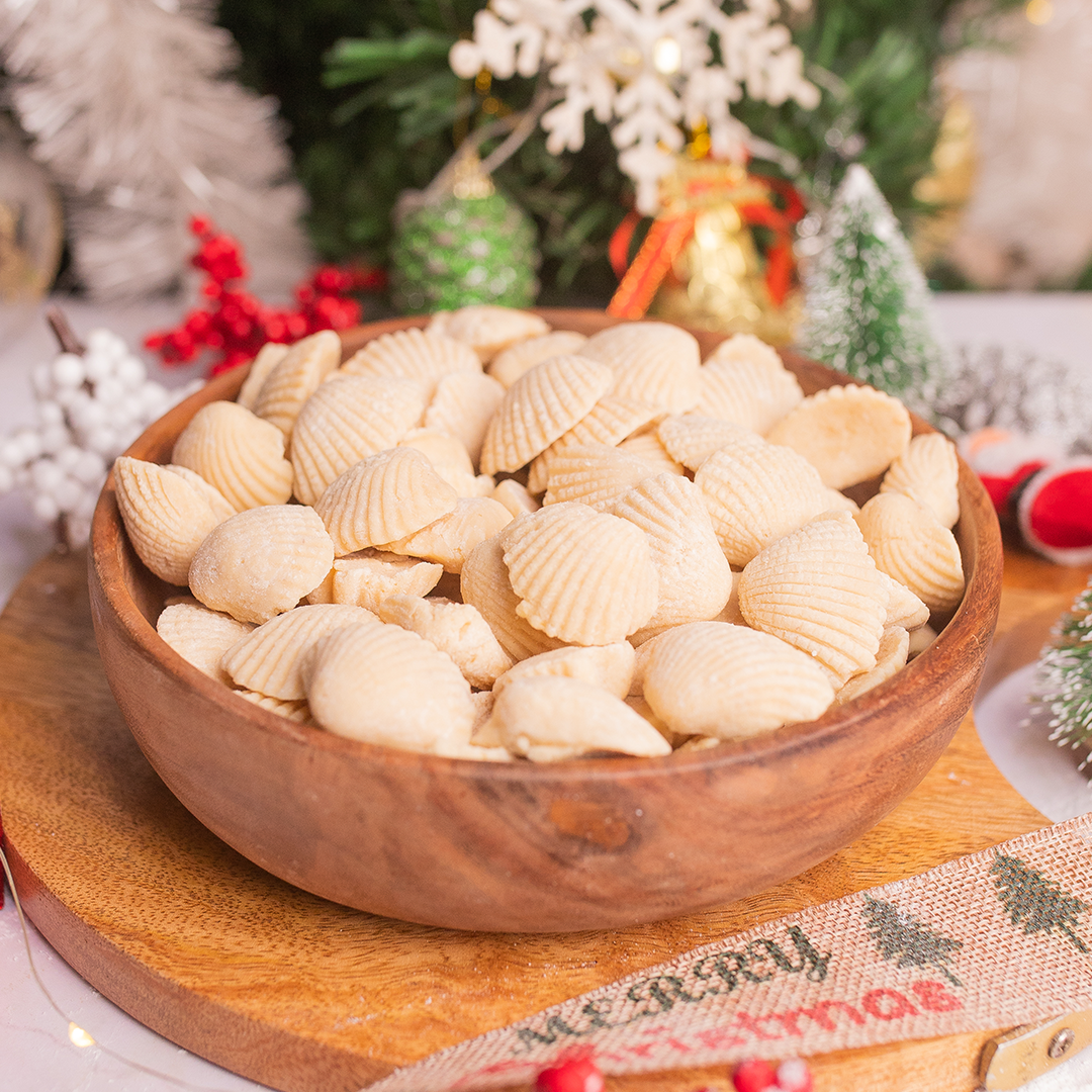 Authentic Christmas candy made from milk and cashews. Cast into fun and preppy shape, these soft and doughy bit-sized candies will melt in your mouth.
