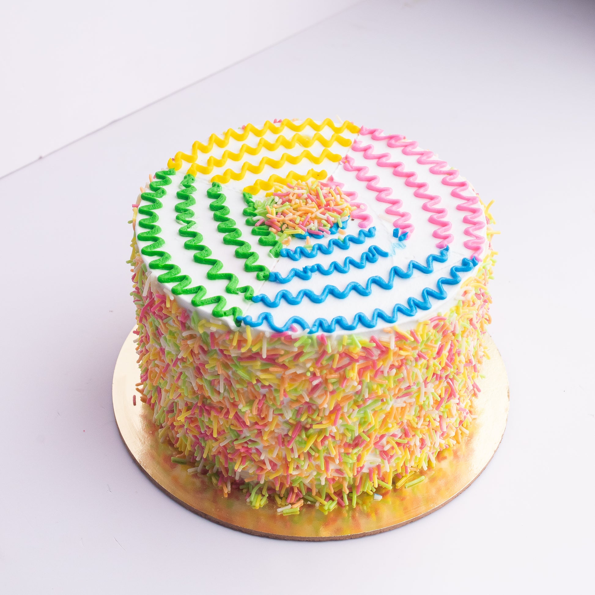 Vibrant and tasteful rainbow-coloured sponge cakes are layered with a fruit-flavoured whipped cream. Topped with mush cream frosting and rainbow sprinkles this colourful delight is fun, flavourful and simply fantastic!