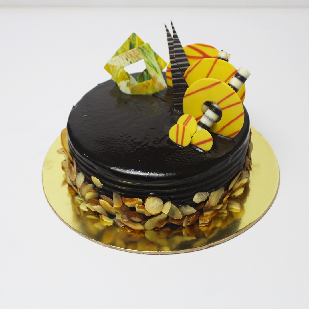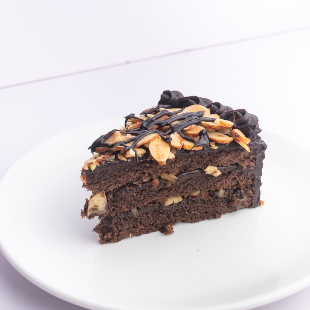 Decadent chocolate cake smeared with a thick layer of chocolate icing. Studded with chopped roasted almonds, every bite of our Rich Almond cake is an ecstatic explosion of crunch and chocolate.