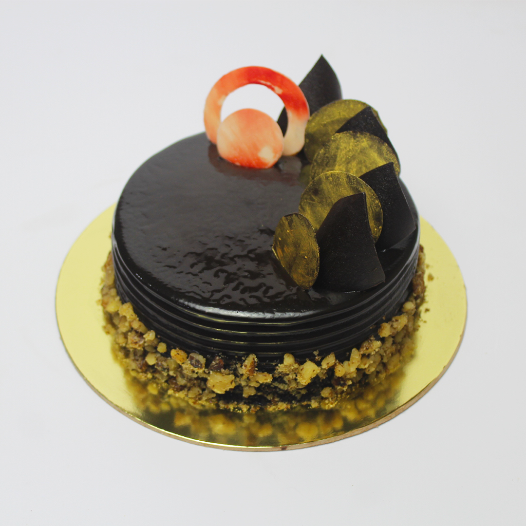 Decadent chocolate cake smeared with a thick layer of chocolate icing. Studded with chopped roasted walnuts, every bite of our Rich Walnut cake is an ecstatic explosion of crunch and chocolate.
